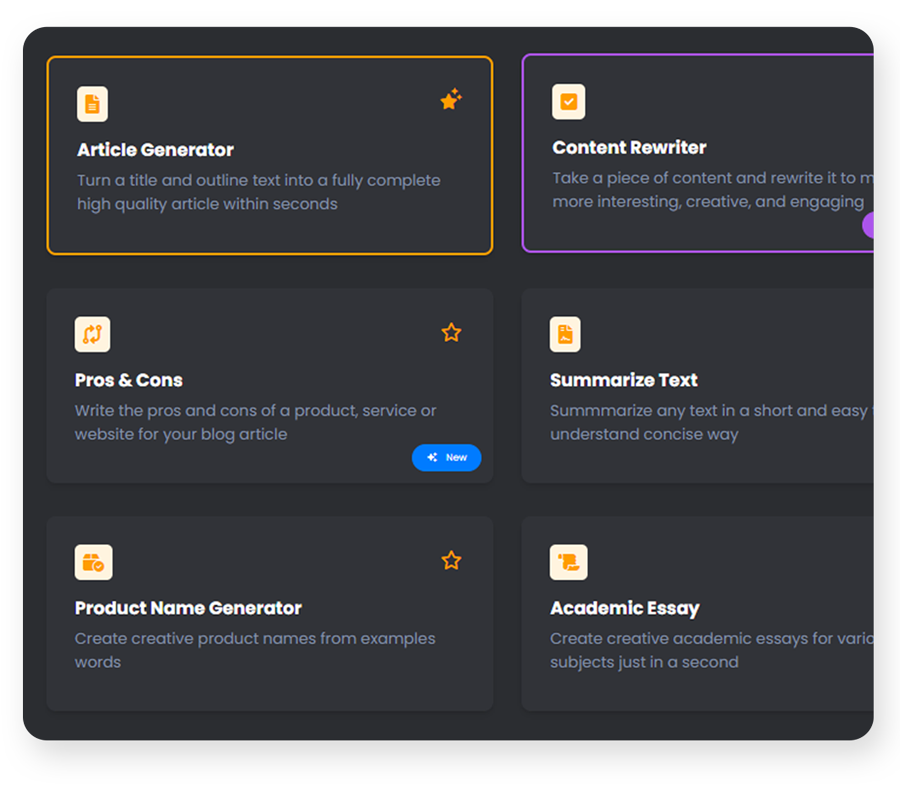For Article GeneratorContent ImproverBlog ContentsAd CreationsText to SpeechAnd Many More!